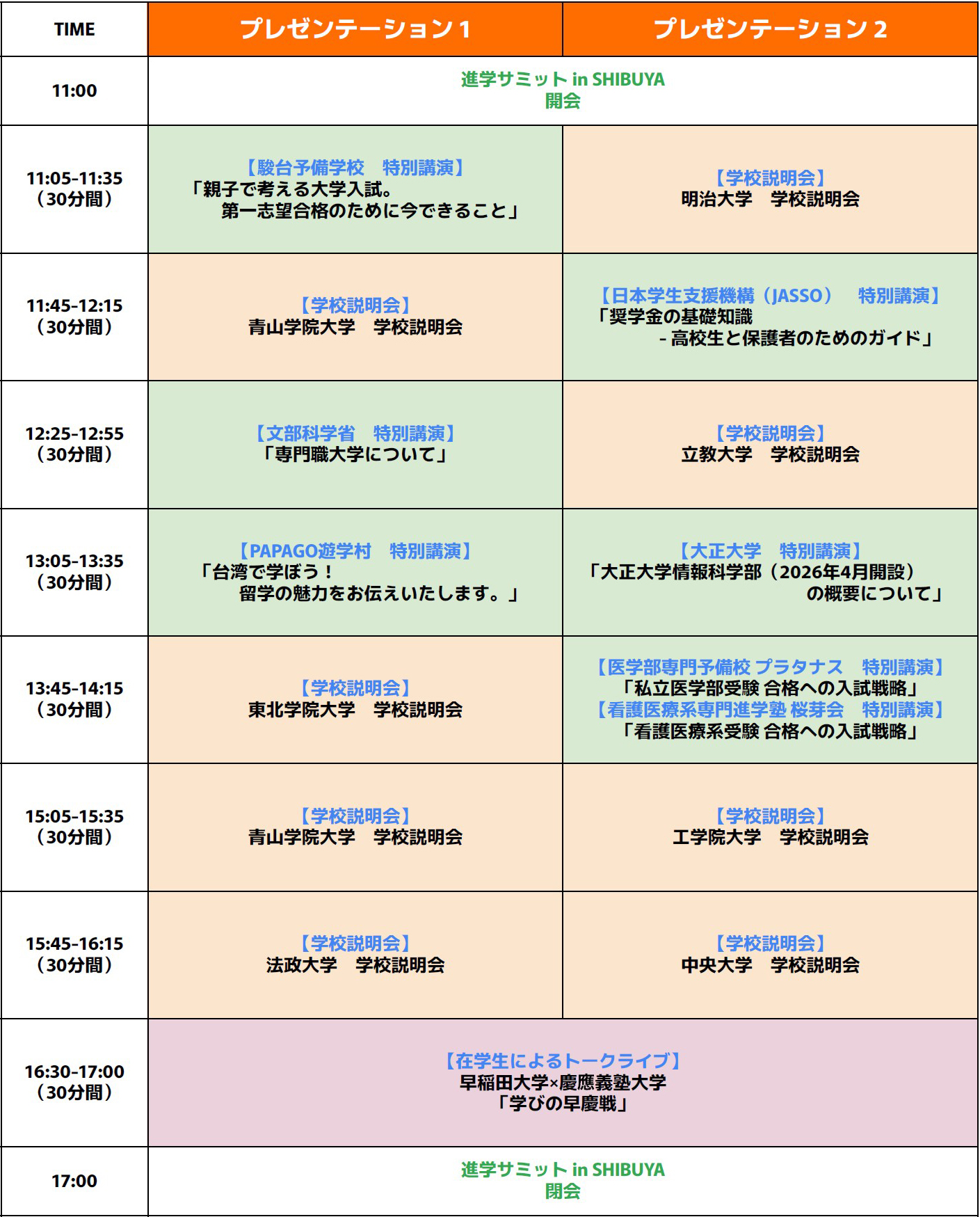各校の入学担当者が、学部・学科の学びや魅力、入試制度などについて説明します。